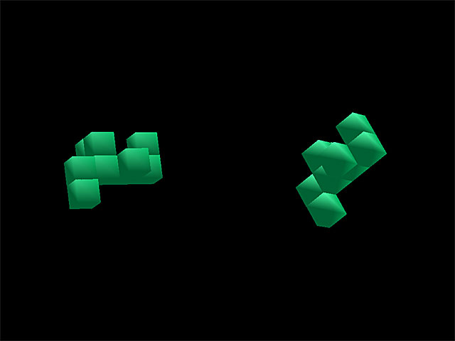Beim Rotator muss der Proband, im Gegensatz zum Mentator ein Objekt mit dem Joystick in die Position des Vergleichobjektes drehen. Bisher standen dafür alle drei Achsen zur Verfügung, es hat sich aber gezeigt, das dies die meisten Probanden komplett überfordert, weswegen das Experiment erstmal auf eine Achse reduziert wurde. |