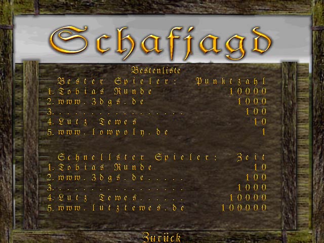 Haben Sie alle Schafe erledigt, so dürfen Sie sich in die Bestenliste eintragen.